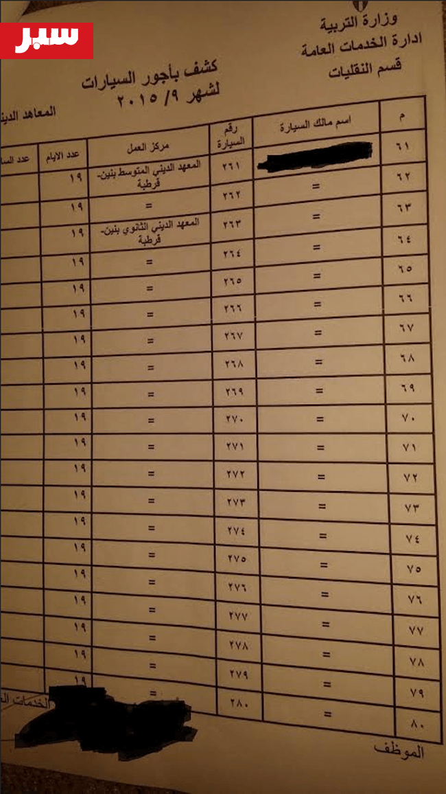 وفي تفاصيل الخبر وتأكيدا على خبرنا السابق والخاص بالخطأ الذي كلف الدولة مبلغ مالي لا يقل عن 190 الف دينار ، فقد حصلت سبر على مجموعة من الفواتير وأوامر الدفع الخاصة بأحد الشركات المكلفة بتوفير باصات النقل لطلبة وطالبات المدارس والمعاهد الدينية والتي تبين من خلالها قيام احد المسئولين بصرف مبلغ مالي زاد عن الخمسون الف دينار نظير أعمال الشركة خلال شهر سبتمبر الماضي بمعدل عمل فعلي لمدة 19 يوم فقط في منطقة تعليمية واحدة ،  وهو ما يناقض الحقيقة فبسبب العطلة الرسمية لإجازة عيد الضحى المبارك وتوقيت بداية العام الدراسي تأكد لنا بأن عدد الأيام خلال هذا الشهر لم يتجاوز ال 11 يوم ، أي وبعد مراجعة بنود العقد يتبين أن الوزارة قد قامت بصرف مبلغ فاق ال 30.000 ثلاثون الف دينار دون وجه حق وعن فترة الإجازات والعطل فقط في منطقة تعليمية واحد استطاعت الجريدة الحصول على أوامر الصرف الخاصة بها .