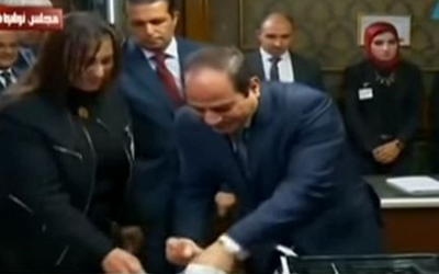 وبدا السيسي مرتبكا لدى قيامه بالتصويت، ولفَّ دورة كاملة حول نفسه، واستغرق وقتا في قراءة بطاقتي الاقتراع، والتأشير ثلاث مرات أمام اسمي المرشحين المطلوب انتخابهما فرديا من بين 44 مرشحا يتقدمهم إسلام الغزولي عن حزب المصريين الأحرار، وفاطمة ناعوت عن حزب الوفد، فضلا عن التوقيع أمام اختيار قائمة حزبية من بين أربع قوائم.