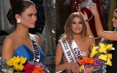 وبعد أن غادرت ملكة جمال الفلبين وسط المسرح لتقف بجانب ملكة جمال الولايات المتحدة أوليفيا جوردان التي حظيت بالمركز الثالث، وبدأت ملكة جمال كولومبيا بتحية الجمهور بعد أن ارتدت التاج، قاطعها هارفي بالقول: “يجب أن أعتذر، إن الوصيفة الأولى هي ملكة جمال كولومبيا”، عارضا ورقة النتائج أمام الكاميرات.