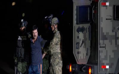 وقد انتهت عملية مطاردة بارون المخدرات الجمعة في المدينة الساحلية لوس موتشيس في ولاية سينالوا، مسقط رأسه، حيث شن مشاة البحرية المكسيكية غارة قتل فيها خمسة من مسلحي غوزمان واصيب جندي بجروح.