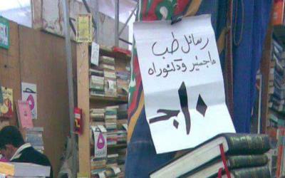 صورة بثها نشطاء من زوار المعرض على موقع فيسبوك لأحد هذه الأكشاك داخل خيمة الكتب القديمة تعرض رسائل الماجستير والدكتوراه الخاصة بكلية الطب، تباع بسعر زهيد لا يتجاوز عشرة جنيهات مصرية (1.1 دولاراً)، داخل أروقة المعرض، أثارت سخرية نشطاء وغضب حاملي الرسائل العلمية لعدم تقديرهم.