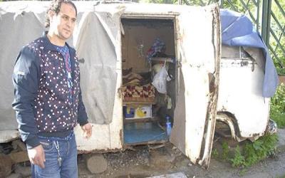 في أعالي بلدية المدنية بالجزائر العاصمة، وبين عمارات شامخة في حيّ الياسمين، تظهر عربة بالية بلا عجلات، وقد تمّ تغطية واجهتها بالبلاستيك بعدما انكسر زجاجها، تبدو مهملة وقد أخذ منها الصدأ مأخذه، وخارت صلابتها أمام حرّ الصيف وقرّ الشتاء، ولا أحد يصدق أن إنسانا يقطن داخلها لأزيد من 24 سنة خلت وتزيد.