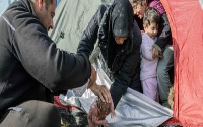 وكانت الصورة التي انتشرت عبر العالم قد أظهرت وليداً، يتم غسله باستخدام زجاجة ماء على الأرض في مساكن اللاجئين المؤقتة بمخيم إدوميني، حيث ينتظر قرابة 12 ألف لاجئ في أوضاع شديدة السوء، عبورَ الحدود اليونانية، حسب ما نقلت صحيفة الغارديان البريطانية أمس.