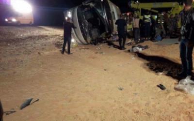وقال البيان ان “عدد الوفيات بين المعتمرين من الأشقاء الفلسطينيين في حادث الحافلة قرب حدود المدورة (الحدود السعودية) ارتفع الى 16 شخصا فيما أصيب 34 آخرون بإصابات مختلفة تراوحت ما بين البالغة والمتوسطة”.