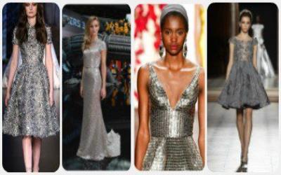 يتصدر اللون الفضي موضة العام فى فساتين السهرة، وهو لون ملائم جدًا لفساتين الخطوبة فإذا كنتِ تستعدين للخطوبة خلال الربيع أو الصيف، فإن الفضي يمثل خيارًا مثاليًا لكِ.