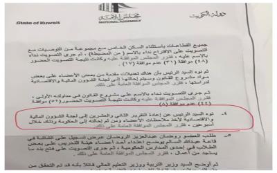 على الرغم من النفي المتكرر لنواب مجلس الأمة بتصويت المجلس على وثيقة الاصلاح الاقتصادي، والقول انها لم ترد إليهم، فقد حصلت سبر على مضبطة المجلس التي تثبت تصويت المجلس على الوثيقة.