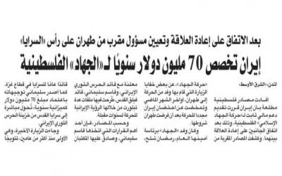 اعتبر مسؤول المكتب الإعلامي لـ«حركة الجهاد الإسلامي» الفلسطينية، داود شهاب، أمس، أن الدعم الإيراني للحركة «ليس تهمة»، وذلك ردًا على ما نشرته «الشرق الأوسط» أمس، حول تخصيص إيران ميزانية سنوية ثابتة للحركة بعد عودة العلاقات بين الطرفين.