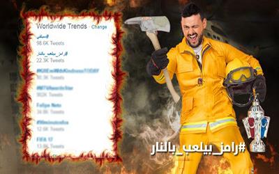 تصدر هاشتاج (رامز يلعب بالنار) المركز الأول عربياً والثاني عالمياً على موقع التواصل الإجتماعي تويتر، وذلك بعد ساعات قليلة جداً من عرض حلقته الأولى على قناة MBC.