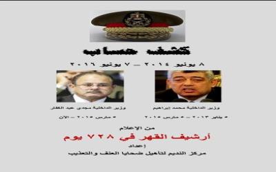 نشر مركز «النديم»، لتأهيل ضحايا العنف والتعذيب، تقريرًا قال أنه «كشف حساب لتوثيق جرائم أمنية وقعت خلال عامين من حكم السيسي»، وقال المركز أن هذا التقرير عبارة عن رصد من الإعلام الإلكتروني والورقي.
