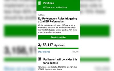 ووقع مليونا بريطاني من مختلف أنحاء #المملكة_المتحدة على العريضة يطالبون فيها بإعادة إجراء الاستفتاء من جديد نتيجة اتضاح أن الكثير من البريطانيين لم يكونوا يدركون عواقب الخروج من الاتحاد الأوروبي، فضلاً عن أن أعداداً كبيرة منهم قد يكونون قد غيروا مواقفهم في الساعات التي تلت نتائج الاستفتاء والتي أظهرت ردود فعل كارثية على البلاد.