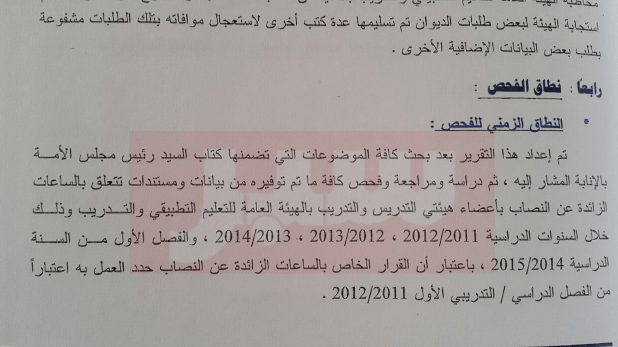 وقد حصلت سبر على التقرير الذي سيعرض غدا في جلسه الأمة، والذي يثبت حسب رأي اللجنه أن نطاق البحث والتحقيق كان قبل تولي د.أحمد الاثري إداره الهيئة، ومن الخطأ تحميل الإداره الحاليه أخطاء إدارات سابقة لا تخصها، وإنما تخص الإدارة السابقة المتمثلة في د. يعقوب الرفاعي ثم د.عبدالرزاق النفيسي