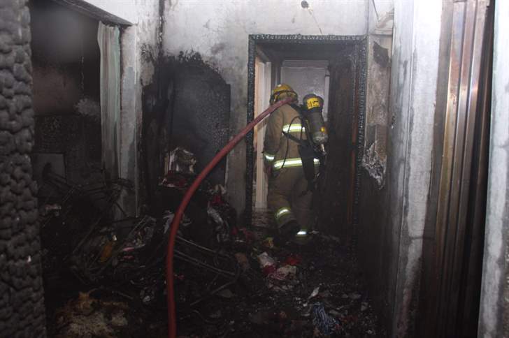وكان وقت وصول أول فرقة اطفاء للموقع في غضون ٤ دقائق، وتبين أن الحريق اندلع في مهملات ملقاة في بيت الدرج بالطابق السابع وامتدت ألسنة اللهب الى الاستراحة الخاصة بالشقق السكنية.