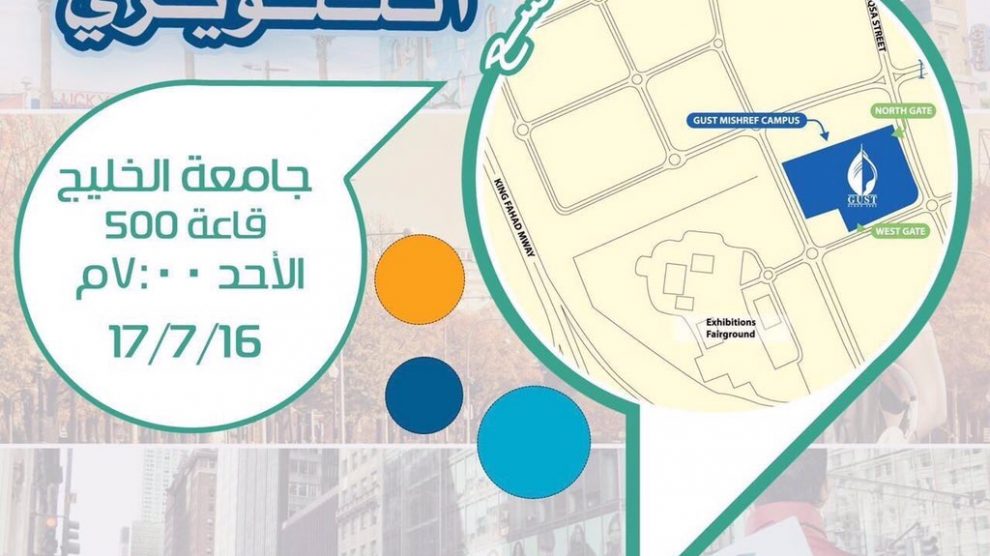 وسيكون اللقاء في جامعة الخليج GUST القاعة 500 في الساعة السابعة من مساء اليوم الأحد.