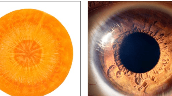 1 – الجزر.. يشبه قزحية عين الإنسان خاصة عندما تقوم بتقطيعه، وأثبتت الدراسات أن تناوله يزيد من تدفق الدم إلى العين، ويحسن من وظائفها لما يحتوي عليه من الفيتامينات والمواد المضادة للتأكسد، كما يحتوي الجزر على مادة كيمياوية النبات يسمى بيتا كاروتين، تقي من خطر إعتام عدسة العين، كما تحميها من الضمور البقعي، والسبب الرئيسي لفقدان البصر عند كبار السن.