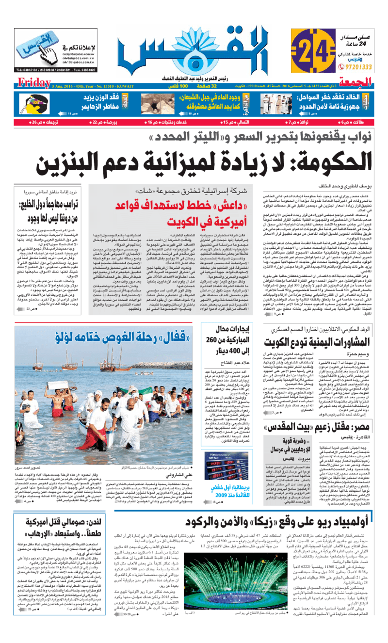 آخر الأخبار جرائم وقضايا “الجمارك” تضبط 29 ألف علبة مشروبات كحولية قادمة من دولة آسيوية في ميناء الشويخ 9 يونيو، 2024 محليات ممثلة عن دولة الكويت الطبيبة الكويتية أسماء الكندري تشارك في المؤتمر العالمي للمناظير في إيطاليا 8 يونيو، 2024 محليات “الصحة”: اكتمال وصول فريق الخدمات الطبية ببعثة الحج الكويتية لمكة المكرمة 8 يونيو، 2024 محليات “الصحة” تحدد 8 مراكز للصحة المدرسية لاستقبال الطلبة المبتعثين 8 يونيو، 2024 عربي وعالمي “الصحة العالمية”: تسجيل أول وفاة لشخص مصاب بـ«أنفلونزا الطيور» 7 يونيو، 2024 محليات عناوين الصحف الكويتية ليوم الجمعة 05 أغسطس 2016 محرر المحليات5 أغسطس، 2016أضف تعليق1 دقائق جريدة الجريدة جريدة الأنباء جريدة القبس جريدة السياسة جريدة الوطن جريدة الراي الوسومTop عناوين الصحف المحلية من الممكن أن يعجبك جرائم وقضايا “الجمارك” تضبط 29 ألف علبة مشروبات كحولية قادمة من دولة آسيوية في ميناء الشويخ محليات ممثلة عن دولة الكويت الطبيبة الكويتية أسماء الكندري تشارك في المؤتمر العالمي للمناظير في إيطاليا محليات “الصحة”: اكتمال وصول فريق الخدمات الطبية ببعثة الحج الكويتية لمكة المكرمة محليات “الصحة” تحدد 8 مراكز للصحة المدرسية لاستقبال الطلبة المبتعثين عربي وعالمي “الصحة العالمية”: تسجيل أول وفاة لشخص مصاب بـ«أنفلونزا الطيور» تكنولوجيا رش السحب بملح البحر.. تجربة “ثورية” لتبريد كوكب الأرض أضف تعليق أضغط هنا لإضافة تعليق إلغاء الردالتعليقالاسم البريد الإلكتروني الموقع الإلكتروني Δ هذا الموقع يستخدم خدمة أكيسميت للتقليل من البريد المزعجة. اعرف المزيد عن كيفية التعامل مع بيانات التعليقات الخاصة بك processed.