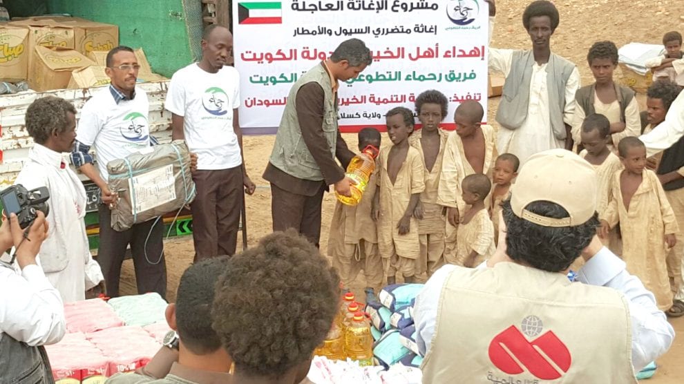 قدمت جمعية الرحمة العالمية الكويتية اليوم السبت دفعة أولى من المساعدات الاغاثية العاجلة لمتضرري السيول والفيضانات بمنطقة (شمال الدلتا) بولاية (كسلا) شرقي السودان.