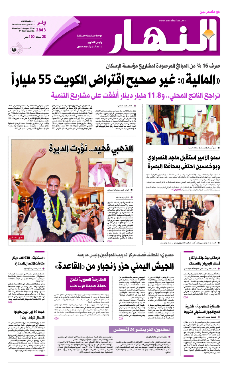 آخر الأخبار جرائم وقضايا “الجمارك” تضبط 29 ألف علبة مشروبات كحولية قادمة من دولة آسيوية في ميناء الشويخ 9 يونيو، 2024 محليات ممثلة عن دولة الكويت الطبيبة الكويتية أسماء الكندري تشارك في المؤتمر العالمي للمناظير في إيطاليا 8 يونيو، 2024 محليات “الصحة”: اكتمال وصول فريق الخدمات الطبية ببعثة الحج الكويتية لمكة المكرمة 8 يونيو، 2024 محليات “الصحة” تحدد 8 مراكز للصحة المدرسية لاستقبال الطلبة المبتعثين 8 يونيو، 2024 عربي وعالمي “الصحة العالمية”: تسجيل أول وفاة لشخص مصاب بـ«أنفلونزا الطيور» 7 يونيو، 2024 محليات عناوين الصحف الكويتية ليوم الاثنين 15 أغسطس 2016 محرر المحليات15 أغسطس، 2016أضف تعليق1 دقائق جريدة الجريدة جريدة الأنباء جريدة القبس جريدة السياسة جريدة الراي جريدة الوسط جريدة النهار الوسومTop عناوين الصحف المحلية من الممكن أن يعجبك جرائم وقضايا “الجمارك” تضبط 29 ألف علبة مشروبات كحولية قادمة من دولة آسيوية في ميناء الشويخ محليات ممثلة عن دولة الكويت الطبيبة الكويتية أسماء الكندري تشارك في المؤتمر العالمي للمناظير في إيطاليا محليات “الصحة”: اكتمال وصول فريق الخدمات الطبية ببعثة الحج الكويتية لمكة المكرمة محليات “الصحة” تحدد 8 مراكز للصحة المدرسية لاستقبال الطلبة المبتعثين عربي وعالمي “الصحة العالمية”: تسجيل أول وفاة لشخص مصاب بـ«أنفلونزا الطيور» تكنولوجيا رش السحب بملح البحر.. تجربة “ثورية” لتبريد كوكب الأرض أضف تعليق أضغط هنا لإضافة تعليق إلغاء الردالتعليقالاسم البريد الإلكتروني الموقع الإلكتروني Δ هذا الموقع يستخدم خدمة أكيسميت للتقليل من البريد المزعجة. اعرف المزيد عن كيفية التعامل مع بيانات التعليقات الخاصة بك processed.