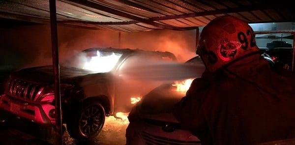 أصيب ثلاثة مواطنين شباب بإصابات بليغة بعد اندلاع حريق في مركبتين، فجر اليوم الثلاثاء.