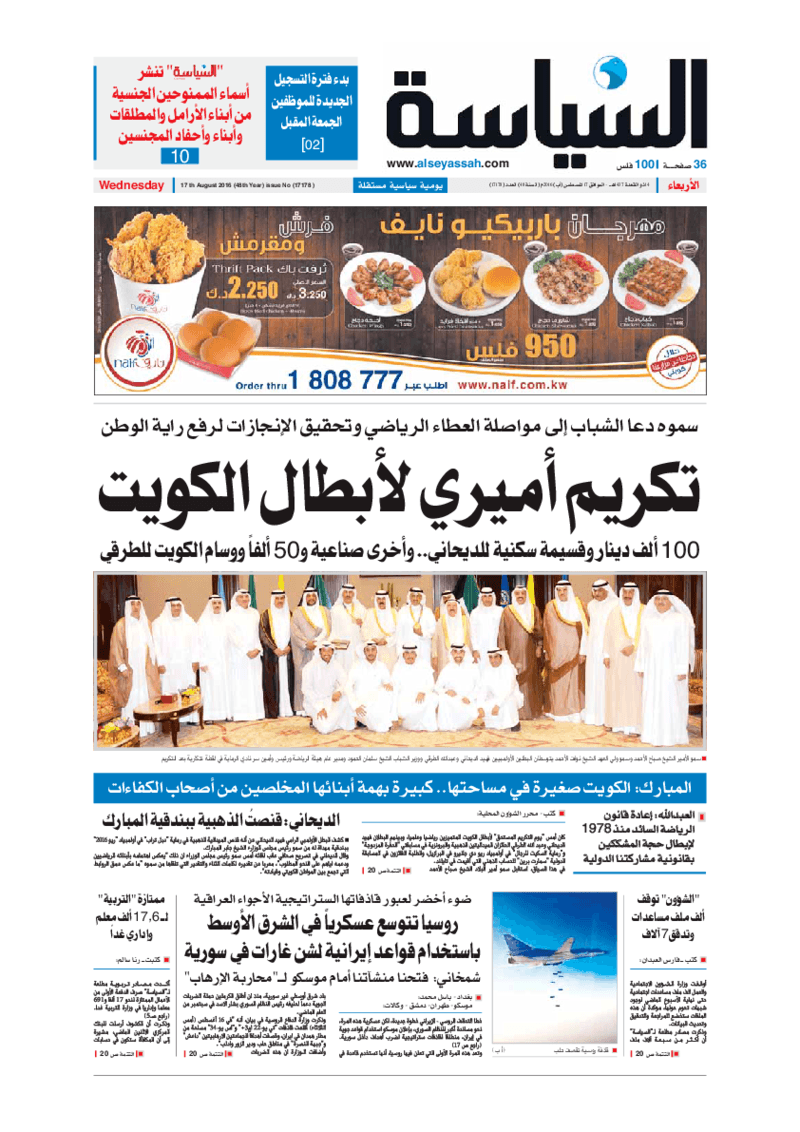 آخر الأخبار جرائم وقضايا “الجمارك” تضبط 29 ألف علبة مشروبات كحولية قادمة من دولة آسيوية في ميناء الشويخ 9 يونيو، 2024 محليات ممثلة عن دولة الكويت الطبيبة الكويتية أسماء الكندري تشارك في المؤتمر العالمي للمناظير في إيطاليا 8 يونيو، 2024 محليات “الصحة”: اكتمال وصول فريق الخدمات الطبية ببعثة الحج الكويتية لمكة المكرمة 8 يونيو، 2024 محليات “الصحة” تحدد 8 مراكز للصحة المدرسية لاستقبال الطلبة المبتعثين 8 يونيو، 2024 عربي وعالمي “الصحة العالمية”: تسجيل أول وفاة لشخص مصاب بـ«أنفلونزا الطيور» 7 يونيو، 2024 محليات عناوين الصحف الكويتية ليوم الأربعاء 17 أغسطس 2016 محرر المحليات17 أغسطس، 2016أضف تعليق1 دقائق جريدة الجريدة جريدة الأنباء جريدة القبس جريدة السياسة جريدة الوطن جريدة الراي جريدة الوسط جريدة النهار الوسومTop عناوين الصحف المحلية من الممكن أن يعجبك جرائم وقضايا “الجمارك” تضبط 29 ألف علبة مشروبات كحولية قادمة من دولة آسيوية في ميناء الشويخ محليات ممثلة عن دولة الكويت الطبيبة الكويتية أسماء الكندري تشارك في المؤتمر العالمي للمناظير في إيطاليا محليات “الصحة”: اكتمال وصول فريق الخدمات الطبية ببعثة الحج الكويتية لمكة المكرمة محليات “الصحة” تحدد 8 مراكز للصحة المدرسية لاستقبال الطلبة المبتعثين عربي وعالمي “الصحة العالمية”: تسجيل أول وفاة لشخص مصاب بـ«أنفلونزا الطيور» تكنولوجيا رش السحب بملح البحر.. تجربة “ثورية” لتبريد كوكب الأرض أضف تعليق أضغط هنا لإضافة تعليق إلغاء الردالتعليقالاسم البريد الإلكتروني الموقع الإلكتروني Δ هذا الموقع يستخدم خدمة أكيسميت للتقليل من البريد المزعجة. اعرف المزيد عن كيفية التعامل مع بيانات التعليقات الخاصة بك processed.