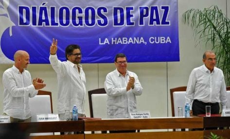وقعت الحكومة الكولومبية، وحركة القوات المسلحة الثورية المتمردة (فارك)، في العاصمة الكوبية هافانا، اتفاق سلام تاريخي، ينهي صراعا بين الطرفين استمر 52 عاما.