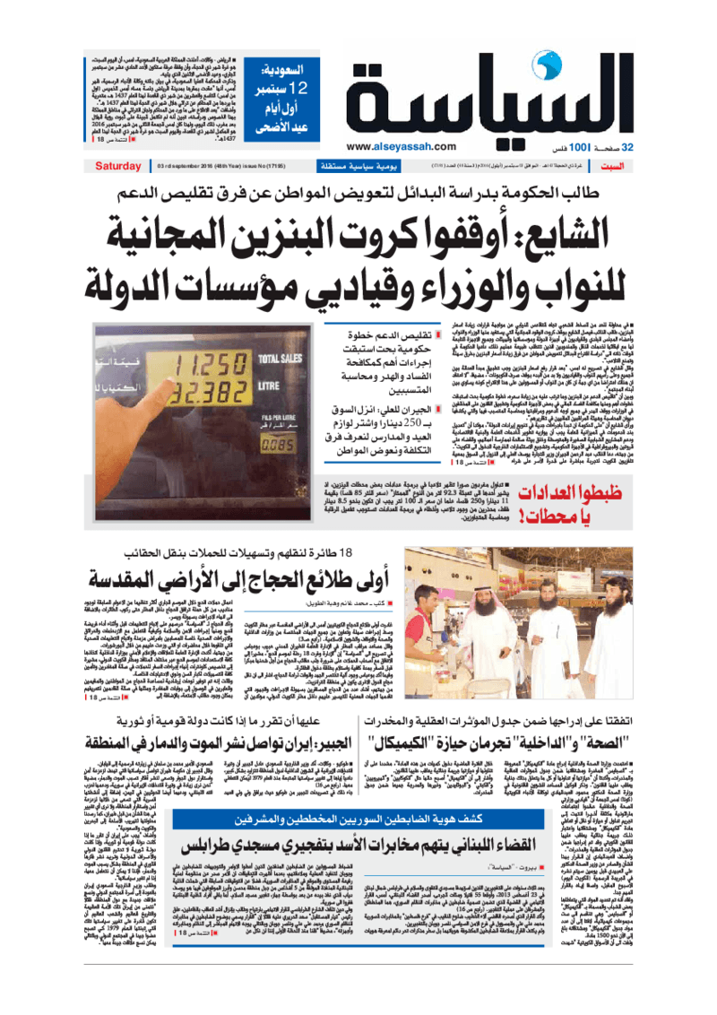 آخر الأخبار جرائم وقضايا “الجمارك” تضبط 29 ألف علبة مشروبات كحولية قادمة من دولة آسيوية في ميناء الشويخ 9 يونيو، 2024 محليات ممثلة عن دولة الكويت الطبيبة الكويتية أسماء الكندري تشارك في المؤتمر العالمي للمناظير في إيطاليا 8 يونيو، 2024 محليات “الصحة”: اكتمال وصول فريق الخدمات الطبية ببعثة الحج الكويتية لمكة المكرمة 8 يونيو، 2024 محليات “الصحة” تحدد 8 مراكز للصحة المدرسية لاستقبال الطلبة المبتعثين 8 يونيو، 2024 عربي وعالمي “الصحة العالمية”: تسجيل أول وفاة لشخص مصاب بـ«أنفلونزا الطيور» 7 يونيو، 2024 محليات عناوين الصحف الكويتية ليوم السبت 03 سبتمبر 2016 محرر المحليات3 سبتمبر، 2016أضف تعليق1 دقائق جريدة الجريدة جريدة الأنباء جريدة القبس جريدة السياسة جريدة الراي الوسومTop عناوين الصحف المحلية من الممكن أن يعجبك جرائم وقضايا “الجمارك” تضبط 29 ألف علبة مشروبات كحولية قادمة من دولة آسيوية في ميناء الشويخ محليات ممثلة عن دولة الكويت الطبيبة الكويتية أسماء الكندري تشارك في المؤتمر العالمي للمناظير في إيطاليا محليات “الصحة”: اكتمال وصول فريق الخدمات الطبية ببعثة الحج الكويتية لمكة المكرمة محليات “الصحة” تحدد 8 مراكز للصحة المدرسية لاستقبال الطلبة المبتعثين عربي وعالمي “الصحة العالمية”: تسجيل أول وفاة لشخص مصاب بـ«أنفلونزا الطيور» تكنولوجيا رش السحب بملح البحر.. تجربة “ثورية” لتبريد كوكب الأرض أضف تعليق أضغط هنا لإضافة تعليق إلغاء الردالتعليقالاسم البريد الإلكتروني الموقع الإلكتروني Δ هذا الموقع يستخدم خدمة أكيسميت للتقليل من البريد المزعجة. اعرف المزيد عن كيفية التعامل مع بيانات التعليقات الخاصة بك processed.