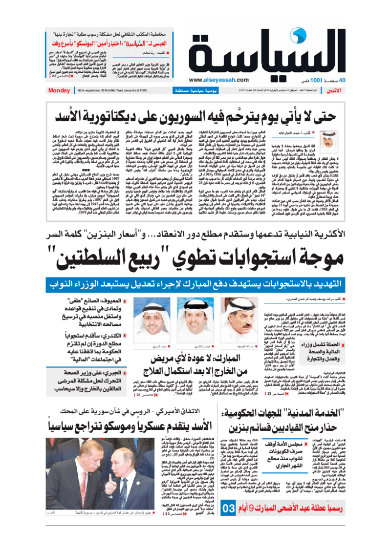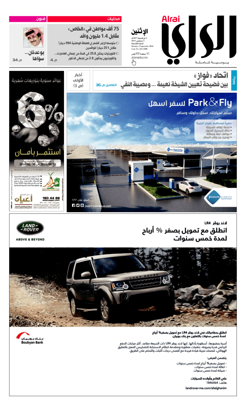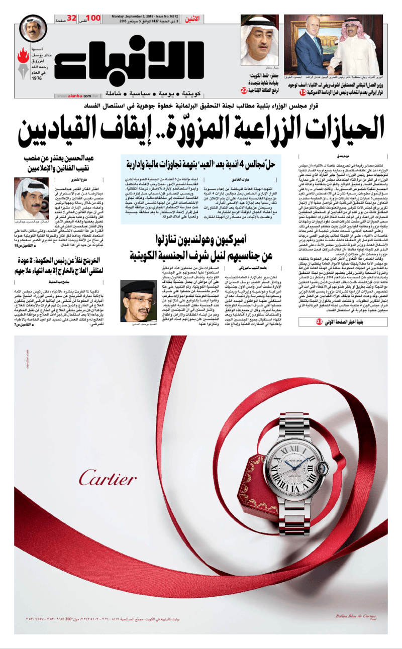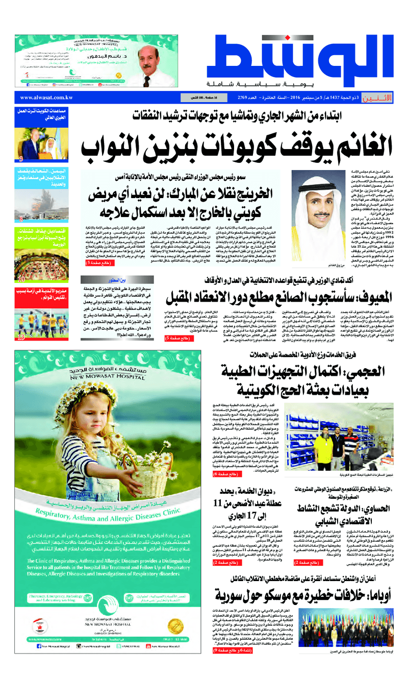 آخر الأخبار جرائم وقضايا “الجمارك” تضبط 29 ألف علبة مشروبات كحولية قادمة من دولة آسيوية في ميناء الشويخ 9 يونيو، 2024 محليات ممثلة عن دولة الكويت الطبيبة الكويتية أسماء الكندري تشارك في المؤتمر العالمي للمناظير في إيطاليا 8 يونيو، 2024 محليات “الصحة”: اكتمال وصول فريق الخدمات الطبية ببعثة الحج الكويتية لمكة المكرمة 8 يونيو، 2024 محليات “الصحة” تحدد 8 مراكز للصحة المدرسية لاستقبال الطلبة المبتعثين 8 يونيو، 2024 عربي وعالمي “الصحة العالمية”: تسجيل أول وفاة لشخص مصاب بـ«أنفلونزا الطيور» 7 يونيو، 2024 محليات عناوين الصحف الكويتية ليوم الاثنين 05 سبتمبر 2016 محرر المحليات5 سبتمبر، 2016أضف تعليق1 دقائق جريدة الجريدة جريدة الأنباء جريدة القبس جريدة السياسة جريدة الوطن جريدة الراي جريدة الوسط جريدة النهار الوسومTop عناوين الصحف المحلية من الممكن أن يعجبك جرائم وقضايا “الجمارك” تضبط 29 ألف علبة مشروبات كحولية قادمة من دولة آسيوية في ميناء الشويخ محليات ممثلة عن دولة الكويت الطبيبة الكويتية أسماء الكندري تشارك في المؤتمر العالمي للمناظير في إيطاليا محليات “الصحة”: اكتمال وصول فريق الخدمات الطبية ببعثة الحج الكويتية لمكة المكرمة محليات “الصحة” تحدد 8 مراكز للصحة المدرسية لاستقبال الطلبة المبتعثين عربي وعالمي “الصحة العالمية”: تسجيل أول وفاة لشخص مصاب بـ«أنفلونزا الطيور» تكنولوجيا رش السحب بملح البحر.. تجربة “ثورية” لتبريد كوكب الأرض أضف تعليق أضغط هنا لإضافة تعليق إلغاء الردالتعليقالاسم البريد الإلكتروني الموقع الإلكتروني Δ هذا الموقع يستخدم خدمة أكيسميت للتقليل من البريد المزعجة. اعرف المزيد عن كيفية التعامل مع بيانات التعليقات الخاصة بك processed.