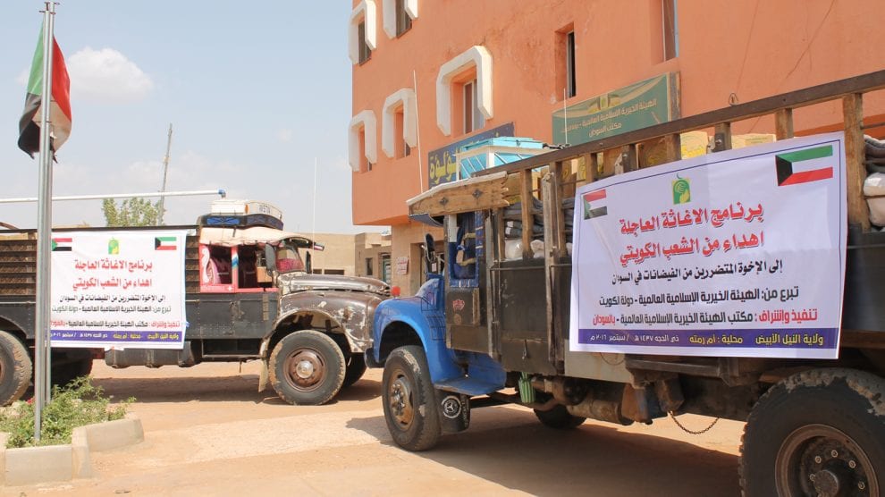 سيرت الهيئة الخيرية الاسلامية العالمية الكويتية اليوم الاثنين قافلة مساعدات اغاثية لولايتي (النيل الابيض) و(الجزيرة) السودانيتين اللتين تشهدان امطارا وسيولا وفياضانات أودت بحياة 76 شخصا وأسفرت كذلك عن تضرر نحو 160 ألف شخص آخرين.