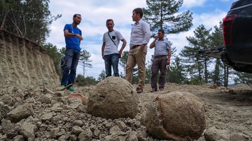 وبحسب مراسل الأناضول فإنّ عمّال وحدة إدارة الغابات أبلغوا الجهات المعنية بعثورهم على مئات من الأحجار الكروية أثناء قيامهم بشق طريق حراجي يصل بين قريتي أقصو وفنديجاق.