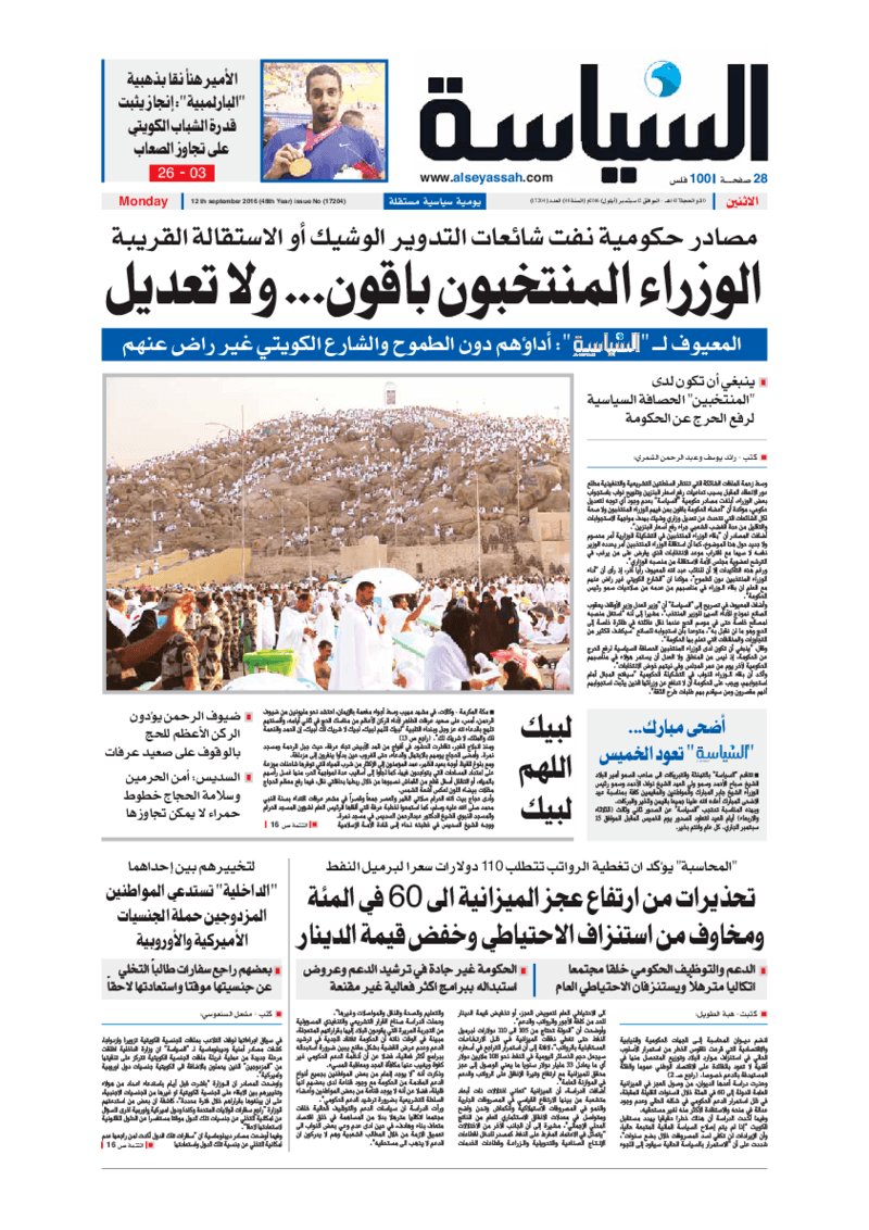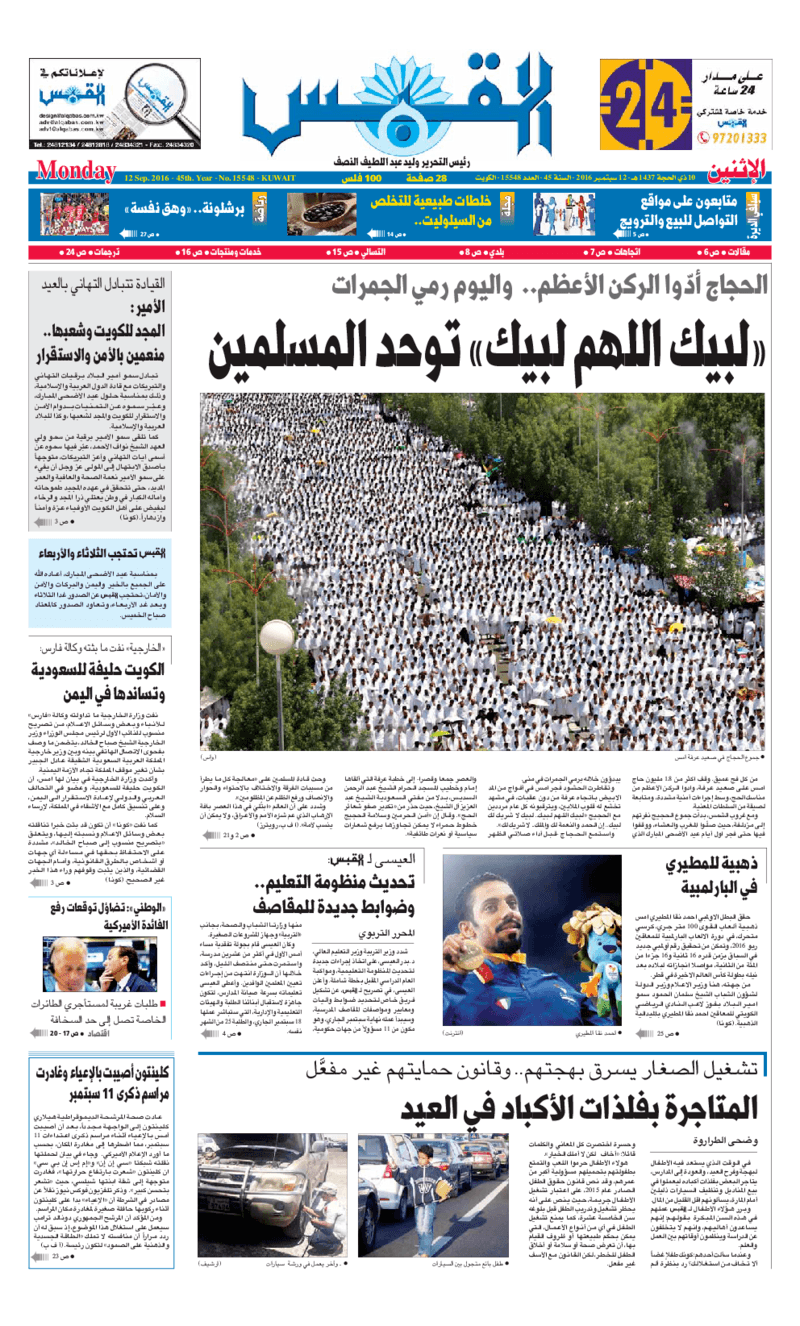 آخر الأخبار جرائم وقضايا “الجمارك” تضبط 29 ألف علبة مشروبات كحولية قادمة من دولة آسيوية في ميناء الشويخ 9 يونيو، 2024 محليات ممثلة عن دولة الكويت الطبيبة الكويتية أسماء الكندري تشارك في المؤتمر العالمي للمناظير في إيطاليا 8 يونيو، 2024 محليات “الصحة”: اكتمال وصول فريق الخدمات الطبية ببعثة الحج الكويتية لمكة المكرمة 8 يونيو، 2024 محليات “الصحة” تحدد 8 مراكز للصحة المدرسية لاستقبال الطلبة المبتعثين 8 يونيو، 2024 عربي وعالمي “الصحة العالمية”: تسجيل أول وفاة لشخص مصاب بـ«أنفلونزا الطيور» 7 يونيو، 2024 محليات عناوين الصحف الكويتية ليوم الاثنين 12 سبتمبر 2016 محرر المحليات12 سبتمبر، 2016أضف تعليق1 دقائق جريدة الجريدة جريدة الأنباء جريدة القبس جريدة السياسة جريدة الوطن جريدة الراي الوسومTop عناوين الصحف المحلية من الممكن أن يعجبك جرائم وقضايا “الجمارك” تضبط 29 ألف علبة مشروبات كحولية قادمة من دولة آسيوية في ميناء الشويخ محليات ممثلة عن دولة الكويت الطبيبة الكويتية أسماء الكندري تشارك في المؤتمر العالمي للمناظير في إيطاليا محليات “الصحة”: اكتمال وصول فريق الخدمات الطبية ببعثة الحج الكويتية لمكة المكرمة محليات “الصحة” تحدد 8 مراكز للصحة المدرسية لاستقبال الطلبة المبتعثين عربي وعالمي “الصحة العالمية”: تسجيل أول وفاة لشخص مصاب بـ«أنفلونزا الطيور» تكنولوجيا رش السحب بملح البحر.. تجربة “ثورية” لتبريد كوكب الأرض أضف تعليق أضغط هنا لإضافة تعليق إلغاء الردالتعليقالاسم البريد الإلكتروني الموقع الإلكتروني Δ هذا الموقع يستخدم خدمة أكيسميت للتقليل من البريد المزعجة. اعرف المزيد عن كيفية التعامل مع بيانات التعليقات الخاصة بك processed.