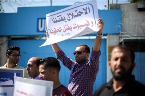 ورفع المشاركون في الوقفة التي دعت إليها حملة (فيس بوك يراقب فلسطين)، والتي يُشرف عليها مجموعة من الصحفيين المناهضين لإغلاق الحسابات الفلسطينية، لافتات كُتب على بعضها “الاحتلال الإسرائيلي يقتلنا، والفيس بوك يقتل الحقيقة”، “أوقفوا تغييب الرواية الفلسطينية”.