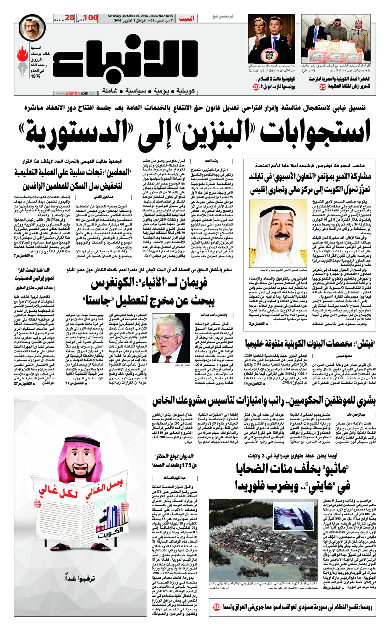 آخر الأخبار جرائم وقضايا “الجمارك” تضبط 29 ألف علبة مشروبات كحولية قادمة من دولة آسيوية في ميناء الشويخ 9 يونيو، 2024 محليات ممثلة عن دولة الكويت الطبيبة الكويتية أسماء الكندري تشارك في المؤتمر العالمي للمناظير في إيطاليا 8 يونيو، 2024 محليات “الصحة”: اكتمال وصول فريق الخدمات الطبية ببعثة الحج الكويتية لمكة المكرمة 8 يونيو، 2024 محليات “الصحة” تحدد 8 مراكز للصحة المدرسية لاستقبال الطلبة المبتعثين 8 يونيو، 2024 عربي وعالمي “الصحة العالمية”: تسجيل أول وفاة لشخص مصاب بـ«أنفلونزا الطيور» 7 يونيو، 2024 محليات عناوين الصحف الكويتية ليوم السبت 08 أكتوبر 2016 محرر المحليات8 أكتوبر، 2016أضف تعليق1 دقائق جريدة الجريدة جريدة الأنباء جريدة القبس جريدة السياسة جريدة الراي الوسومTop عناوين الصحف المحلية من الممكن أن يعجبك جرائم وقضايا “الجمارك” تضبط 29 ألف علبة مشروبات كحولية قادمة من دولة آسيوية في ميناء الشويخ محليات ممثلة عن دولة الكويت الطبيبة الكويتية أسماء الكندري تشارك في المؤتمر العالمي للمناظير في إيطاليا محليات “الصحة”: اكتمال وصول فريق الخدمات الطبية ببعثة الحج الكويتية لمكة المكرمة محليات “الصحة” تحدد 8 مراكز للصحة المدرسية لاستقبال الطلبة المبتعثين عربي وعالمي “الصحة العالمية”: تسجيل أول وفاة لشخص مصاب بـ«أنفلونزا الطيور» تكنولوجيا رش السحب بملح البحر.. تجربة “ثورية” لتبريد كوكب الأرض أضف تعليق أضغط هنا لإضافة تعليق إلغاء الردالتعليقالاسم البريد الإلكتروني الموقع الإلكتروني Δ هذا الموقع يستخدم خدمة أكيسميت للتقليل من البريد المزعجة. اعرف المزيد عن كيفية التعامل مع بيانات التعليقات الخاصة بك processed.