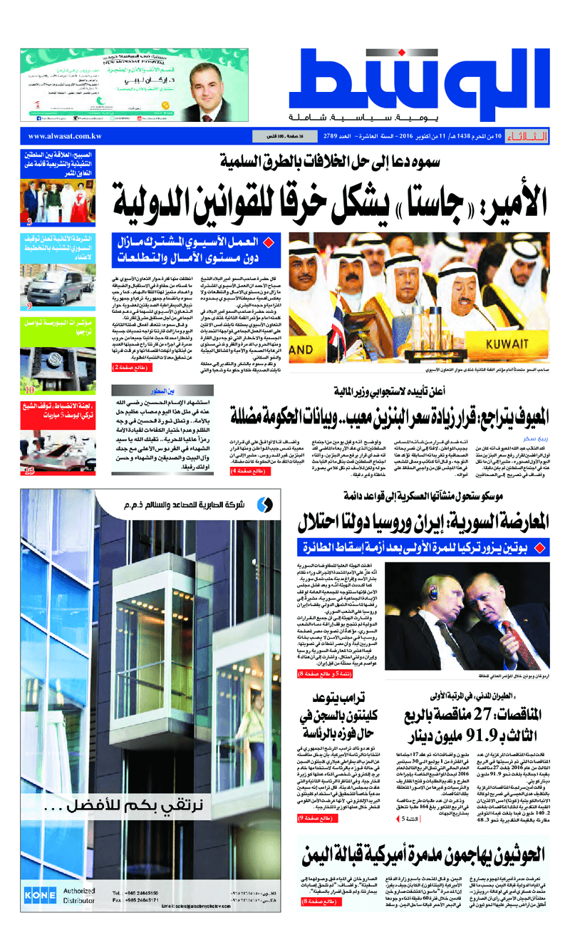 آخر الأخبار جرائم وقضايا “الجمارك” تضبط 29 ألف علبة مشروبات كحولية قادمة من دولة آسيوية في ميناء الشويخ 9 يونيو، 2024 محليات ممثلة عن دولة الكويت الطبيبة الكويتية أسماء الكندري تشارك في المؤتمر العالمي للمناظير في إيطاليا 8 يونيو، 2024 محليات “الصحة”: اكتمال وصول فريق الخدمات الطبية ببعثة الحج الكويتية لمكة المكرمة 8 يونيو، 2024 محليات “الصحة” تحدد 8 مراكز للصحة المدرسية لاستقبال الطلبة المبتعثين 8 يونيو، 2024 عربي وعالمي “الصحة العالمية”: تسجيل أول وفاة لشخص مصاب بـ«أنفلونزا الطيور» 7 يونيو، 2024 محليات عناوين الصحف الكويتية ليوم الثلاثاء 11 أكتوبر 2016 محرر المحليات11 أكتوبر، 2016أضف تعليق1 دقائق جريدة الجريدة جريدة الأنباء جريدة القبس جريدة السياسة جريدة الراي جريدة الوسط جريدة النهار الوسومTop عناوين الصحف المحلية من الممكن أن يعجبك جرائم وقضايا “الجمارك” تضبط 29 ألف علبة مشروبات كحولية قادمة من دولة آسيوية في ميناء الشويخ محليات ممثلة عن دولة الكويت الطبيبة الكويتية أسماء الكندري تشارك في المؤتمر العالمي للمناظير في إيطاليا محليات “الصحة”: اكتمال وصول فريق الخدمات الطبية ببعثة الحج الكويتية لمكة المكرمة محليات “الصحة” تحدد 8 مراكز للصحة المدرسية لاستقبال الطلبة المبتعثين عربي وعالمي “الصحة العالمية”: تسجيل أول وفاة لشخص مصاب بـ«أنفلونزا الطيور» تكنولوجيا رش السحب بملح البحر.. تجربة “ثورية” لتبريد كوكب الأرض أضف تعليق أضغط هنا لإضافة تعليق إلغاء الردالتعليقالاسم البريد الإلكتروني الموقع الإلكتروني Δ هذا الموقع يستخدم خدمة أكيسميت للتقليل من البريد المزعجة. اعرف المزيد عن كيفية التعامل مع بيانات التعليقات الخاصة بك processed.