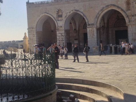 اقتحمت مجموعات من المستوطنين المتطرفين صباح اليوم الأربعاء باحات المسجد الأقصى المبارك- الحرم القدسي الشريف- من جهة باب المغاربة تحت حراسة مشددة من شرطة وقوات الاحتلال المدججة بالسلاح.