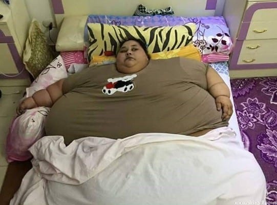 إيمان أحمد عبدالعاطي، فتاة مصرية، تقيم في منطقة سموحة بالإسكندرية شمال البلاد تبلغ من العمر 36 عاما، ويصل وزنها إلى 500 كيلوغرام، ولذلك لم تخرج من منزلها منذ ربع قرن، ولم تجد حتى الآن علاجاً لحالتها في مستشفيات مصر.