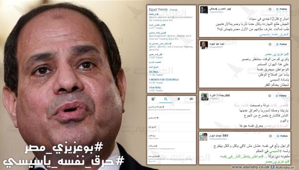 وانتشر وسم “#حرق_نفسه يا سيسي”، ليتصدر قائمة الأكثر تداولاً، موجهين الرسالة للسيسي شخصياً “مستني إيه أكتر من كده؟”.