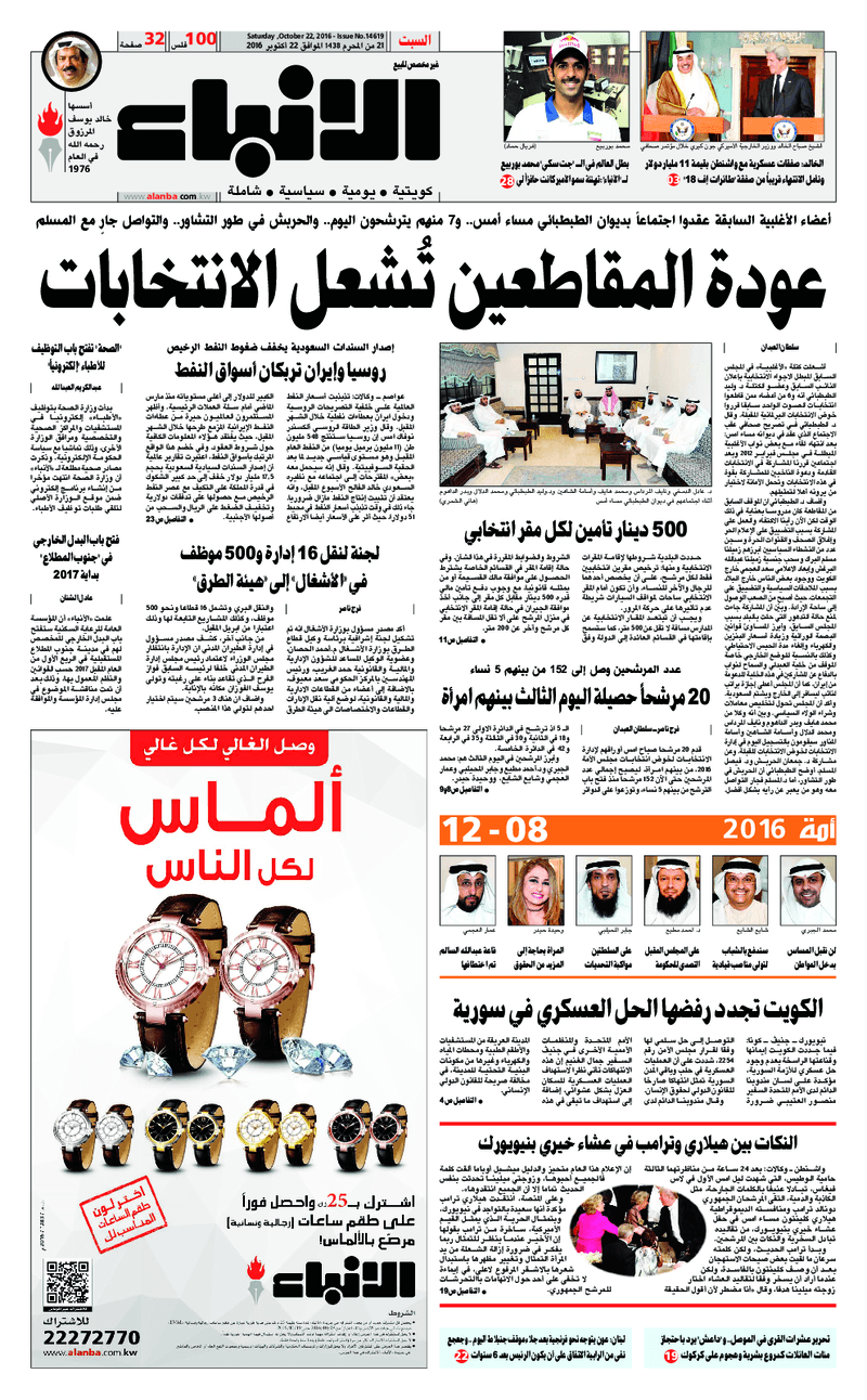 آخر الأخبار جرائم وقضايا “الجمارك” تضبط 29 ألف علبة مشروبات كحولية قادمة من دولة آسيوية في ميناء الشويخ 9 يونيو، 2024 محليات ممثلة عن دولة الكويت الطبيبة الكويتية أسماء الكندري تشارك في المؤتمر العالمي للمناظير في إيطاليا 8 يونيو، 2024 محليات “الصحة”: اكتمال وصول فريق الخدمات الطبية ببعثة الحج الكويتية لمكة المكرمة 8 يونيو، 2024 محليات “الصحة” تحدد 8 مراكز للصحة المدرسية لاستقبال الطلبة المبتعثين 8 يونيو، 2024 عربي وعالمي “الصحة العالمية”: تسجيل أول وفاة لشخص مصاب بـ«أنفلونزا الطيور» 7 يونيو، 2024 محليات عناوين الصحف الكويتية ليوم السبت 22 أكتوبر 2016 محرر المحليات22 أكتوبر، 2016أضف تعليق1 دقائق جريدة الجريدة جريدة الأنباء جريدة القبس جريدة السياسة جريدة الوطن جريدة الراي الوسومTop عناوين الصحف المحلية من الممكن أن يعجبك جرائم وقضايا “الجمارك” تضبط 29 ألف علبة مشروبات كحولية قادمة من دولة آسيوية في ميناء الشويخ محليات ممثلة عن دولة الكويت الطبيبة الكويتية أسماء الكندري تشارك في المؤتمر العالمي للمناظير في إيطاليا محليات “الصحة”: اكتمال وصول فريق الخدمات الطبية ببعثة الحج الكويتية لمكة المكرمة محليات “الصحة” تحدد 8 مراكز للصحة المدرسية لاستقبال الطلبة المبتعثين عربي وعالمي “الصحة العالمية”: تسجيل أول وفاة لشخص مصاب بـ«أنفلونزا الطيور» تكنولوجيا رش السحب بملح البحر.. تجربة “ثورية” لتبريد كوكب الأرض أضف تعليق أضغط هنا لإضافة تعليق إلغاء الردالتعليقالاسم البريد الإلكتروني الموقع الإلكتروني Δ هذا الموقع يستخدم خدمة أكيسميت للتقليل من البريد المزعجة. اعرف المزيد عن كيفية التعامل مع بيانات التعليقات الخاصة بك processed.