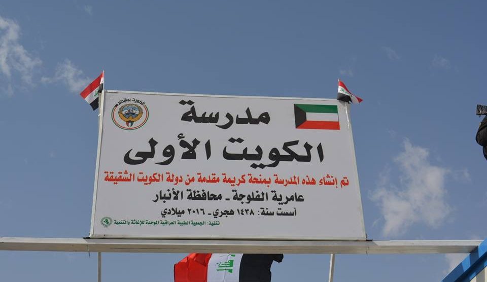 افتتحت دولة الكويت أمس السبت مدرسة متنقلة ومحطة لتنقية مياه الشرب في مخيم (الهجرة) للنازحين في مدينة عامرية الفلوجة بمحافظة الانبار غربي العراق.