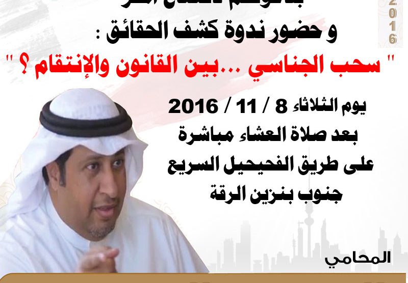 ودعا السبيعي لحضور ندوة “كشف الحقائق” في افتتاح المقر بعنوان : سحب الجناسي.. بين القانون والانتقام.