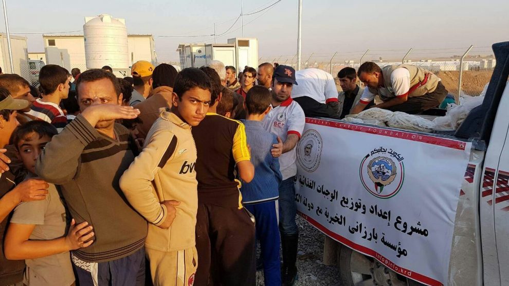 وبدوره أشاد مسؤول المساعدات في مؤسسةالبارزاني الخيرية اسماعيل عبدالعزيز في تصريحه ل(كونا) بدور دولة الكويت في تقديم المساعدات للنازحين وسد حاجاتهم الرئيسية.