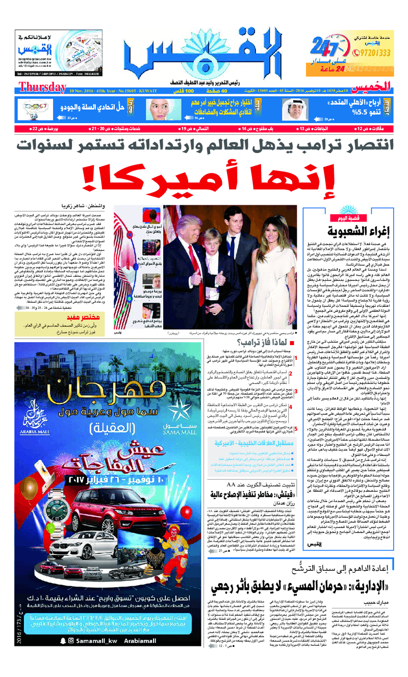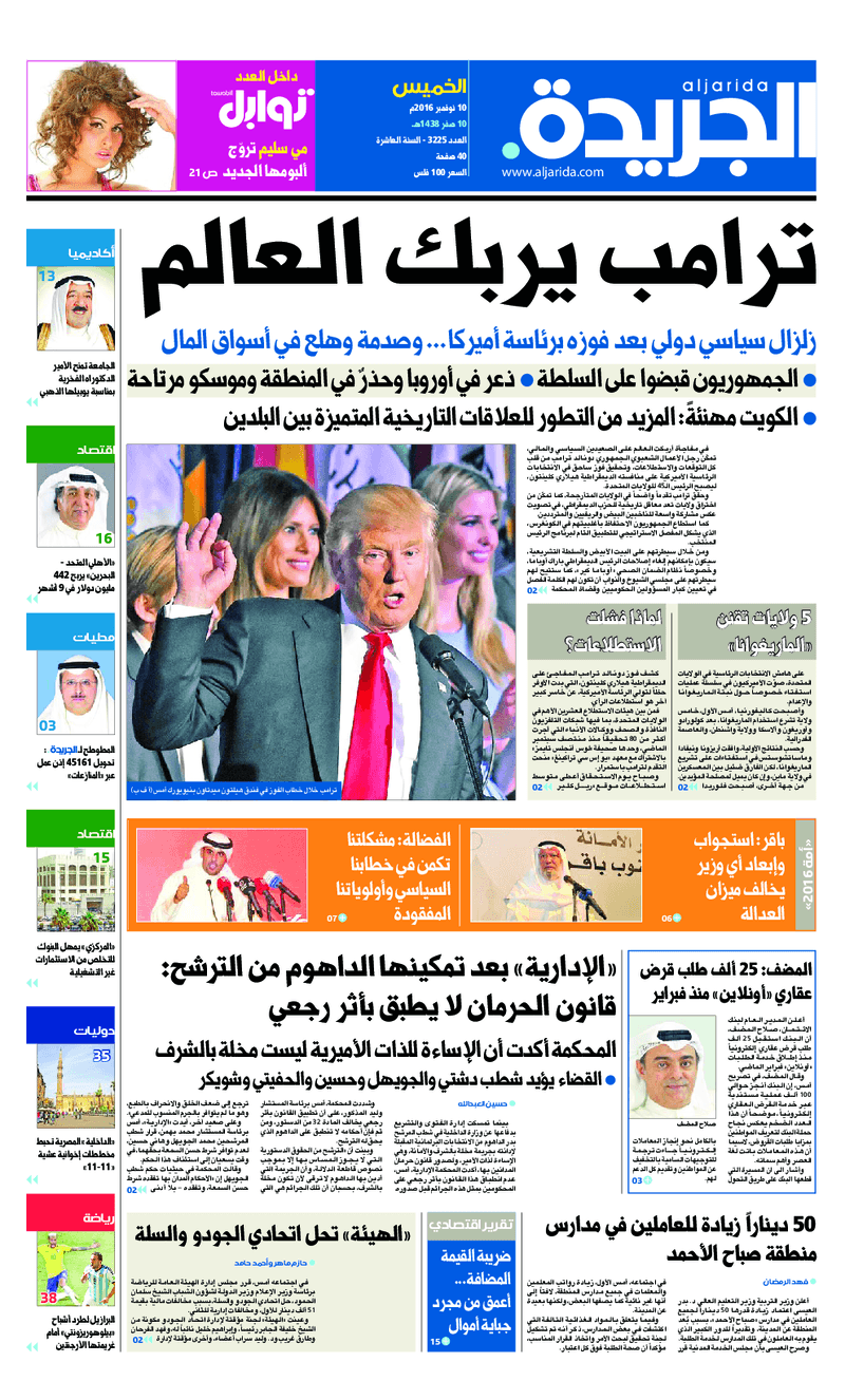 آخر الأخبار جرائم وقضايا “الجمارك” تضبط 29 ألف علبة مشروبات كحولية قادمة من دولة آسيوية في ميناء الشويخ 9 يونيو، 2024 محليات ممثلة عن دولة الكويت الطبيبة الكويتية أسماء الكندري تشارك في المؤتمر العالمي للمناظير في إيطاليا 8 يونيو، 2024 محليات “الصحة”: اكتمال وصول فريق الخدمات الطبية ببعثة الحج الكويتية لمكة المكرمة 8 يونيو، 2024 محليات “الصحة” تحدد 8 مراكز للصحة المدرسية لاستقبال الطلبة المبتعثين 8 يونيو، 2024 عربي وعالمي “الصحة العالمية”: تسجيل أول وفاة لشخص مصاب بـ«أنفلونزا الطيور» 7 يونيو، 2024 محليات عناوين الصحف الكويتية ليوم الخميس 10 نوفمبر 2016 محرر المحليات10 نوفمبر، 2016أضف تعليق1 دقائق جريدة الجريدة جريدة الأنباء جريدة القبس جريدة السياسة جريدة الوطن جريدة الراي جريدة الوسط جريدة النهار الوسومTop عناوين الصحف المحلية من الممكن أن يعجبك جرائم وقضايا “الجمارك” تضبط 29 ألف علبة مشروبات كحولية قادمة من دولة آسيوية في ميناء الشويخ محليات ممثلة عن دولة الكويت الطبيبة الكويتية أسماء الكندري تشارك في المؤتمر العالمي للمناظير في إيطاليا محليات “الصحة”: اكتمال وصول فريق الخدمات الطبية ببعثة الحج الكويتية لمكة المكرمة محليات “الصحة” تحدد 8 مراكز للصحة المدرسية لاستقبال الطلبة المبتعثين عربي وعالمي “الصحة العالمية”: تسجيل أول وفاة لشخص مصاب بـ«أنفلونزا الطيور» تكنولوجيا رش السحب بملح البحر.. تجربة “ثورية” لتبريد كوكب الأرض أضف تعليق أضغط هنا لإضافة تعليق إلغاء الردالتعليقالاسم البريد الإلكتروني الموقع الإلكتروني Δ هذا الموقع يستخدم خدمة أكيسميت للتقليل من البريد المزعجة. اعرف المزيد عن كيفية التعامل مع بيانات التعليقات الخاصة بك processed.