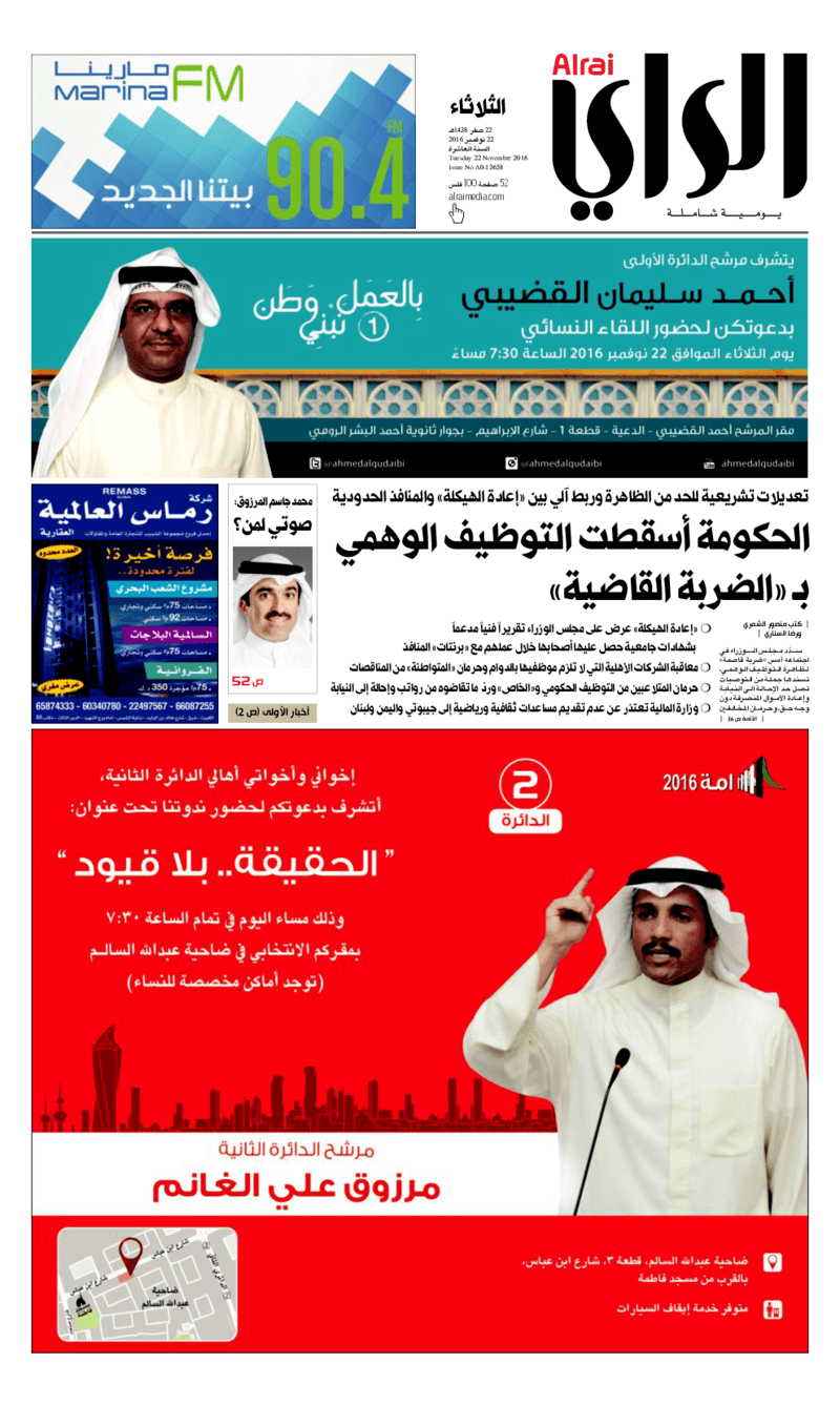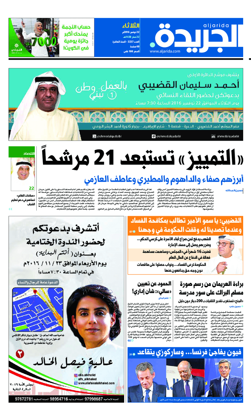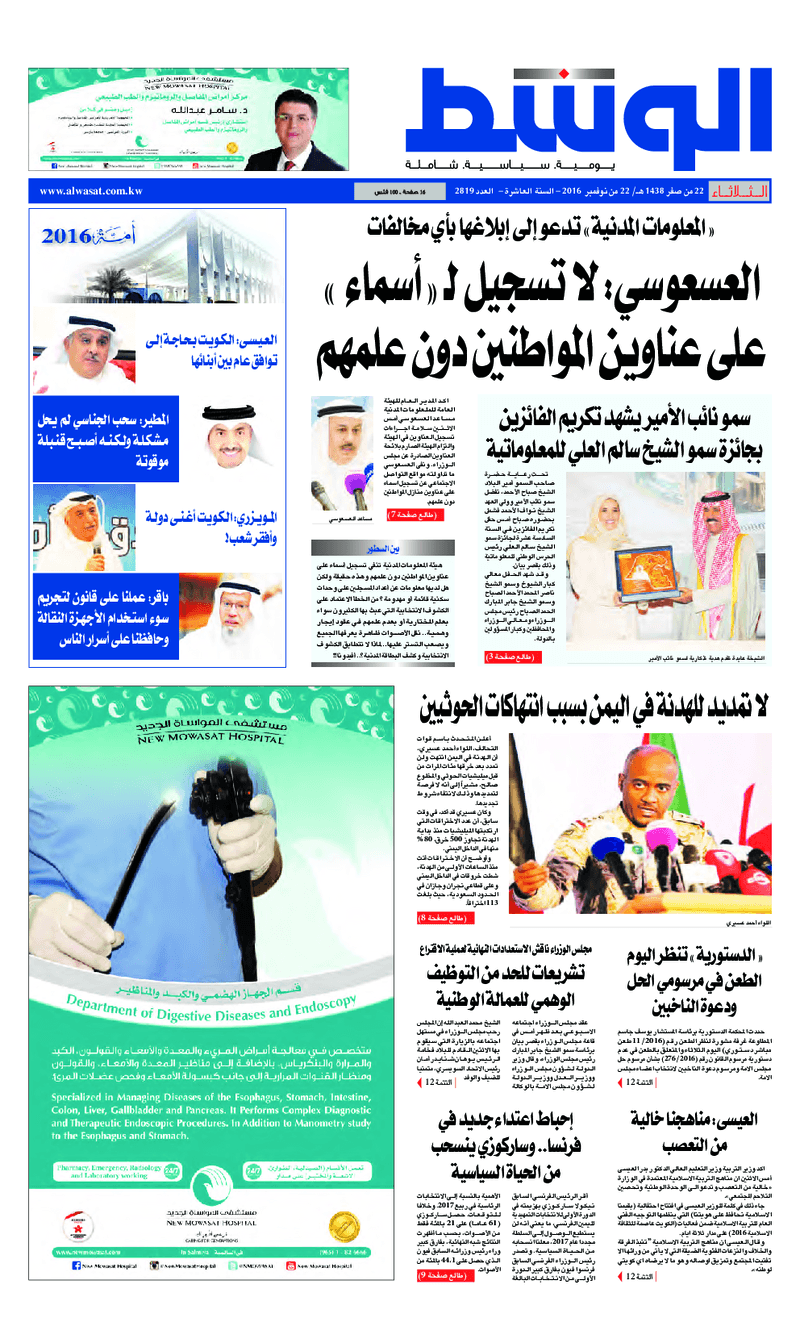 آخر الأخبار جرائم وقضايا “الجمارك” تضبط 29 ألف علبة مشروبات كحولية قادمة من دولة آسيوية في ميناء الشويخ 9 يونيو، 2024 محليات ممثلة عن دولة الكويت الطبيبة الكويتية أسماء الكندري تشارك في المؤتمر العالمي للمناظير في إيطاليا 8 يونيو، 2024 محليات “الصحة”: اكتمال وصول فريق الخدمات الطبية ببعثة الحج الكويتية لمكة المكرمة 8 يونيو، 2024 محليات “الصحة” تحدد 8 مراكز للصحة المدرسية لاستقبال الطلبة المبتعثين 8 يونيو، 2024 عربي وعالمي “الصحة العالمية”: تسجيل أول وفاة لشخص مصاب بـ«أنفلونزا الطيور» 7 يونيو، 2024 محليات عناوين الصحف الكويتية ليوم الثلاثاء 22 نوفمبر 2016 محرر المحليات22 نوفمبر، 2016أضف تعليق1 دقائق جريدة الجريدة جريدة الأنباء جريدة القبس جريدة السياسة جريدة الوطن جريدة الراي جريدة الوسط جريدة النهار الوسومTop عناوين الصحف المحلية من الممكن أن يعجبك جرائم وقضايا “الجمارك” تضبط 29 ألف علبة مشروبات كحولية قادمة من دولة آسيوية في ميناء الشويخ محليات ممثلة عن دولة الكويت الطبيبة الكويتية أسماء الكندري تشارك في المؤتمر العالمي للمناظير في إيطاليا محليات “الصحة”: اكتمال وصول فريق الخدمات الطبية ببعثة الحج الكويتية لمكة المكرمة محليات “الصحة” تحدد 8 مراكز للصحة المدرسية لاستقبال الطلبة المبتعثين عربي وعالمي “الصحة العالمية”: تسجيل أول وفاة لشخص مصاب بـ«أنفلونزا الطيور» تكنولوجيا رش السحب بملح البحر.. تجربة “ثورية” لتبريد كوكب الأرض أضف تعليق أضغط هنا لإضافة تعليق إلغاء الردالتعليقالاسم البريد الإلكتروني الموقع الإلكتروني Δ هذا الموقع يستخدم خدمة أكيسميت للتقليل من البريد المزعجة. اعرف المزيد عن كيفية التعامل مع بيانات التعليقات الخاصة بك processed.