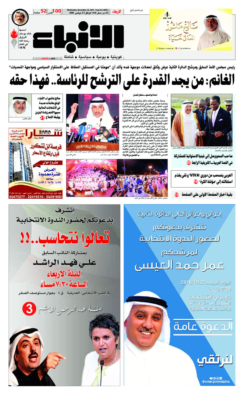 آخر الأخبار جرائم وقضايا “الجمارك” تضبط 29 ألف علبة مشروبات كحولية قادمة من دولة آسيوية في ميناء الشويخ 9 يونيو، 2024 محليات ممثلة عن دولة الكويت الطبيبة الكويتية أسماء الكندري تشارك في المؤتمر العالمي للمناظير في إيطاليا 8 يونيو، 2024 محليات “الصحة”: اكتمال وصول فريق الخدمات الطبية ببعثة الحج الكويتية لمكة المكرمة 8 يونيو، 2024 محليات “الصحة” تحدد 8 مراكز للصحة المدرسية لاستقبال الطلبة المبتعثين 8 يونيو، 2024 عربي وعالمي “الصحة العالمية”: تسجيل أول وفاة لشخص مصاب بـ«أنفلونزا الطيور» 7 يونيو، 2024 محليات عناوين الصحف الكويتية ليوم الأربعاء 23 نوفمبر 2016 محرر المحليات23 نوفمبر، 2016أضف تعليق1 دقائق جريدة الجريدة جريدة الأنباء جريدة القبس جريدة السياسة جريدة الوطن جريدة الراي جريدة الوسط جريدة النهار الوسومTop عناوين الصحف المحلية من الممكن أن يعجبك جرائم وقضايا “الجمارك” تضبط 29 ألف علبة مشروبات كحولية قادمة من دولة آسيوية في ميناء الشويخ محليات ممثلة عن دولة الكويت الطبيبة الكويتية أسماء الكندري تشارك في المؤتمر العالمي للمناظير في إيطاليا محليات “الصحة”: اكتمال وصول فريق الخدمات الطبية ببعثة الحج الكويتية لمكة المكرمة محليات “الصحة” تحدد 8 مراكز للصحة المدرسية لاستقبال الطلبة المبتعثين عربي وعالمي “الصحة العالمية”: تسجيل أول وفاة لشخص مصاب بـ«أنفلونزا الطيور» تكنولوجيا رش السحب بملح البحر.. تجربة “ثورية” لتبريد كوكب الأرض أضف تعليق أضغط هنا لإضافة تعليق إلغاء الردالتعليقالاسم البريد الإلكتروني الموقع الإلكتروني Δ هذا الموقع يستخدم خدمة أكيسميت للتقليل من البريد المزعجة. اعرف المزيد عن كيفية التعامل مع بيانات التعليقات الخاصة بك processed.