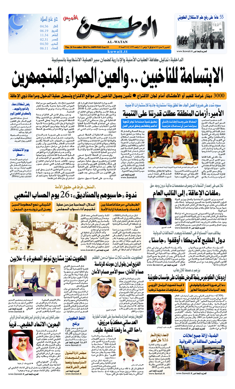 آخر الأخبار جرائم وقضايا “الجمارك” تضبط 29 ألف علبة مشروبات كحولية قادمة من دولة آسيوية في ميناء الشويخ 9 يونيو، 2024 محليات ممثلة عن دولة الكويت الطبيبة الكويتية أسماء الكندري تشارك في المؤتمر العالمي للمناظير في إيطاليا 8 يونيو، 2024 محليات “الصحة”: اكتمال وصول فريق الخدمات الطبية ببعثة الحج الكويتية لمكة المكرمة 8 يونيو، 2024 محليات “الصحة” تحدد 8 مراكز للصحة المدرسية لاستقبال الطلبة المبتعثين 8 يونيو، 2024 عربي وعالمي “الصحة العالمية”: تسجيل أول وفاة لشخص مصاب بـ«أنفلونزا الطيور» 7 يونيو، 2024 محليات عناوين الصحف الكويتية ليوم الخميس 24 نوفمبر 2016 محرر المحليات24 نوفمبر، 2016أضف تعليق1 دقائق جريدة الجريدة جريدة الأنباء جريدة القبس جريدة السياسة جريدة الوطن جريدة الراي جريدة الوسط جريدة النهار الوسومTop عناوين الصحف المحلية من الممكن أن يعجبك جرائم وقضايا “الجمارك” تضبط 29 ألف علبة مشروبات كحولية قادمة من دولة آسيوية في ميناء الشويخ محليات ممثلة عن دولة الكويت الطبيبة الكويتية أسماء الكندري تشارك في المؤتمر العالمي للمناظير في إيطاليا محليات “الصحة”: اكتمال وصول فريق الخدمات الطبية ببعثة الحج الكويتية لمكة المكرمة محليات “الصحة” تحدد 8 مراكز للصحة المدرسية لاستقبال الطلبة المبتعثين عربي وعالمي “الصحة العالمية”: تسجيل أول وفاة لشخص مصاب بـ«أنفلونزا الطيور» تكنولوجيا رش السحب بملح البحر.. تجربة “ثورية” لتبريد كوكب الأرض أضف تعليق أضغط هنا لإضافة تعليق إلغاء الردالتعليقالاسم البريد الإلكتروني الموقع الإلكتروني Δ هذا الموقع يستخدم خدمة أكيسميت للتقليل من البريد المزعجة. اعرف المزيد عن كيفية التعامل مع بيانات التعليقات الخاصة بك processed.