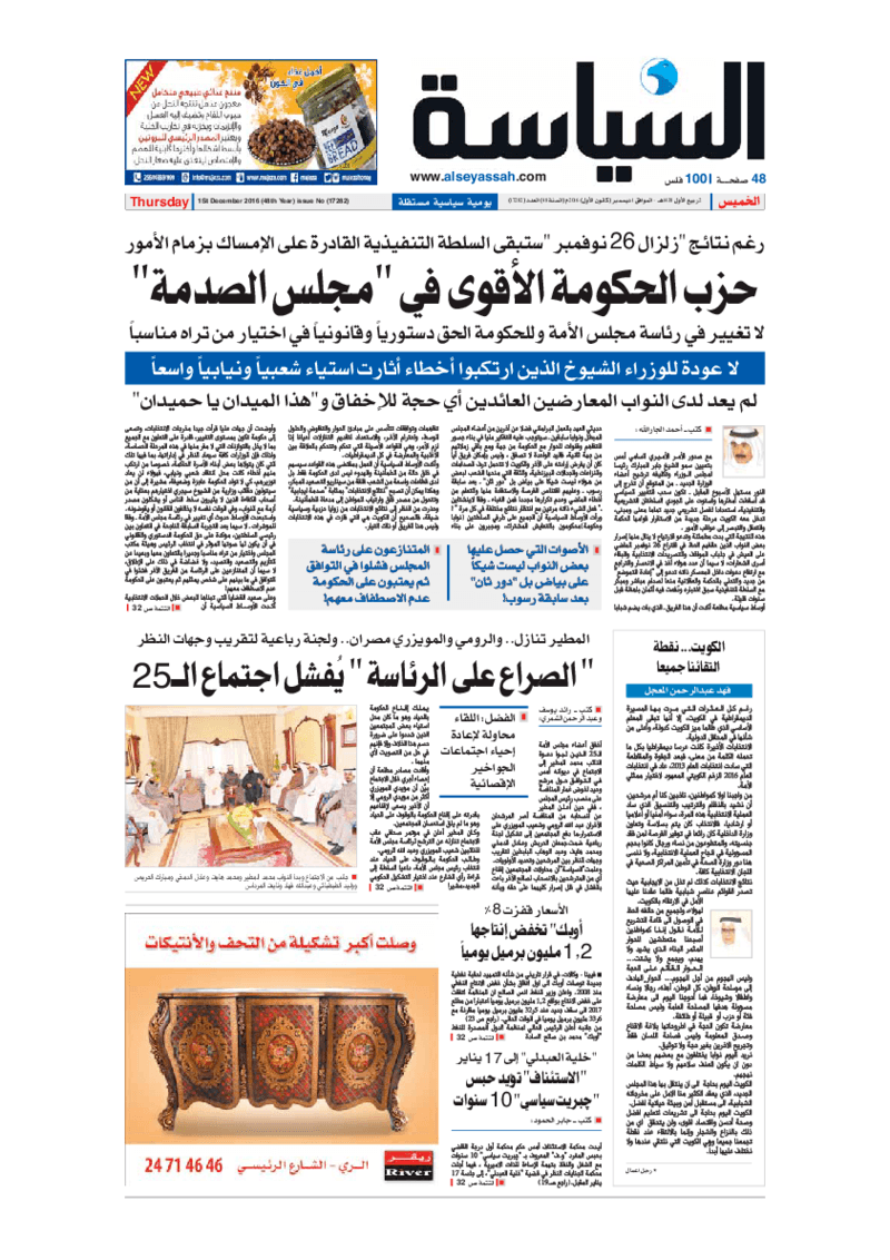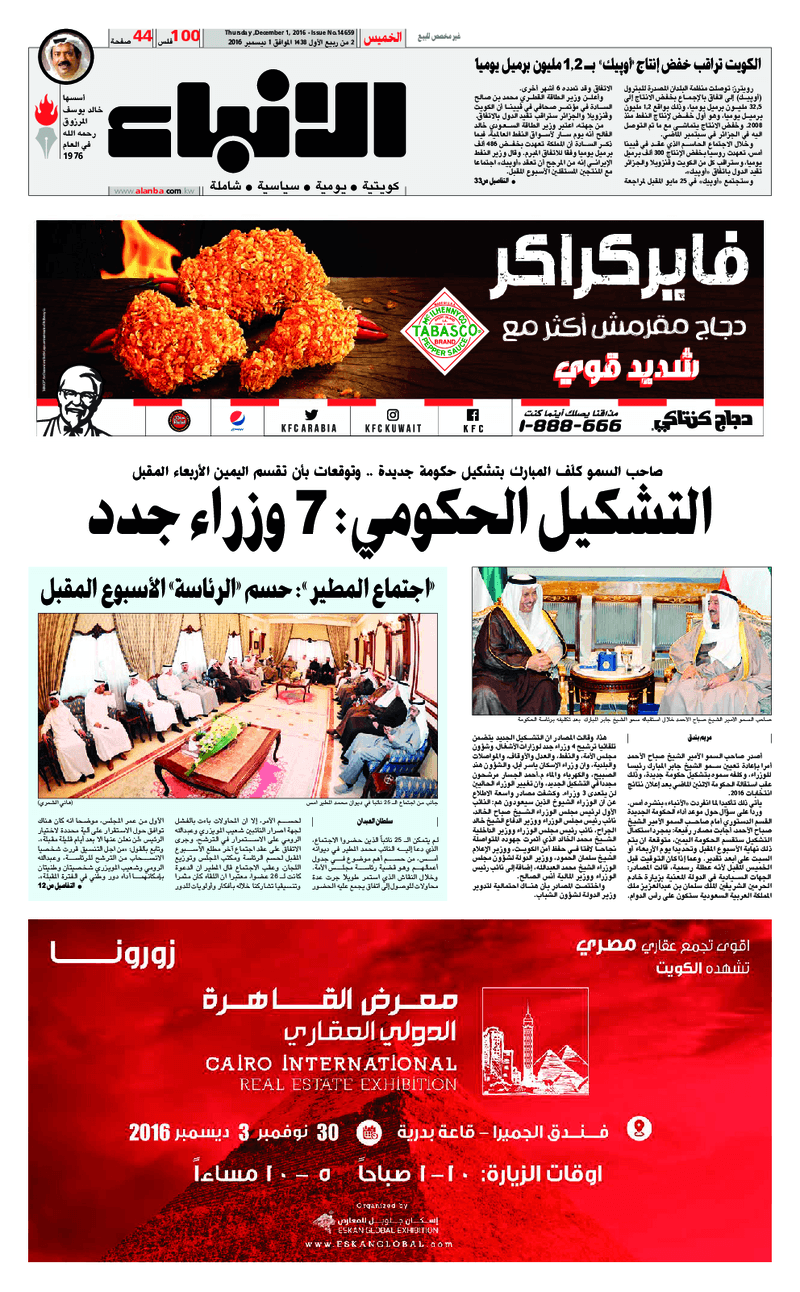 آخر الأخبار جرائم وقضايا “الجمارك” تضبط 29 ألف علبة مشروبات كحولية قادمة من دولة آسيوية في ميناء الشويخ 9 يونيو، 2024 محليات ممثلة عن دولة الكويت الطبيبة الكويتية أسماء الكندري تشارك في المؤتمر العالمي للمناظير في إيطاليا 8 يونيو، 2024 محليات “الصحة”: اكتمال وصول فريق الخدمات الطبية ببعثة الحج الكويتية لمكة المكرمة 8 يونيو، 2024 محليات “الصحة” تحدد 8 مراكز للصحة المدرسية لاستقبال الطلبة المبتعثين 8 يونيو، 2024 عربي وعالمي “الصحة العالمية”: تسجيل أول وفاة لشخص مصاب بـ«أنفلونزا الطيور» 7 يونيو، 2024 محليات عناوين الصحف الكويتية ليوم الخميس 01 ديسمبر 2016 محرر المحليات1 ديسمبر، 2016أضف تعليق1 دقائق جريدة الجريدة جريدة الأنباء جريدة القبس جريدة السياسة جريدة الوطن جريدة الراي جريدة الوسط جريدة النهار الوسومTop عناوين الصحف المحلية من الممكن أن يعجبك جرائم وقضايا “الجمارك” تضبط 29 ألف علبة مشروبات كحولية قادمة من دولة آسيوية في ميناء الشويخ محليات ممثلة عن دولة الكويت الطبيبة الكويتية أسماء الكندري تشارك في المؤتمر العالمي للمناظير في إيطاليا محليات “الصحة”: اكتمال وصول فريق الخدمات الطبية ببعثة الحج الكويتية لمكة المكرمة محليات “الصحة” تحدد 8 مراكز للصحة المدرسية لاستقبال الطلبة المبتعثين عربي وعالمي “الصحة العالمية”: تسجيل أول وفاة لشخص مصاب بـ«أنفلونزا الطيور» تكنولوجيا رش السحب بملح البحر.. تجربة “ثورية” لتبريد كوكب الأرض أضف تعليق أضغط هنا لإضافة تعليق إلغاء الردالتعليقالاسم البريد الإلكتروني الموقع الإلكتروني Δ هذا الموقع يستخدم خدمة أكيسميت للتقليل من البريد المزعجة. اعرف المزيد عن كيفية التعامل مع بيانات التعليقات الخاصة بك processed.