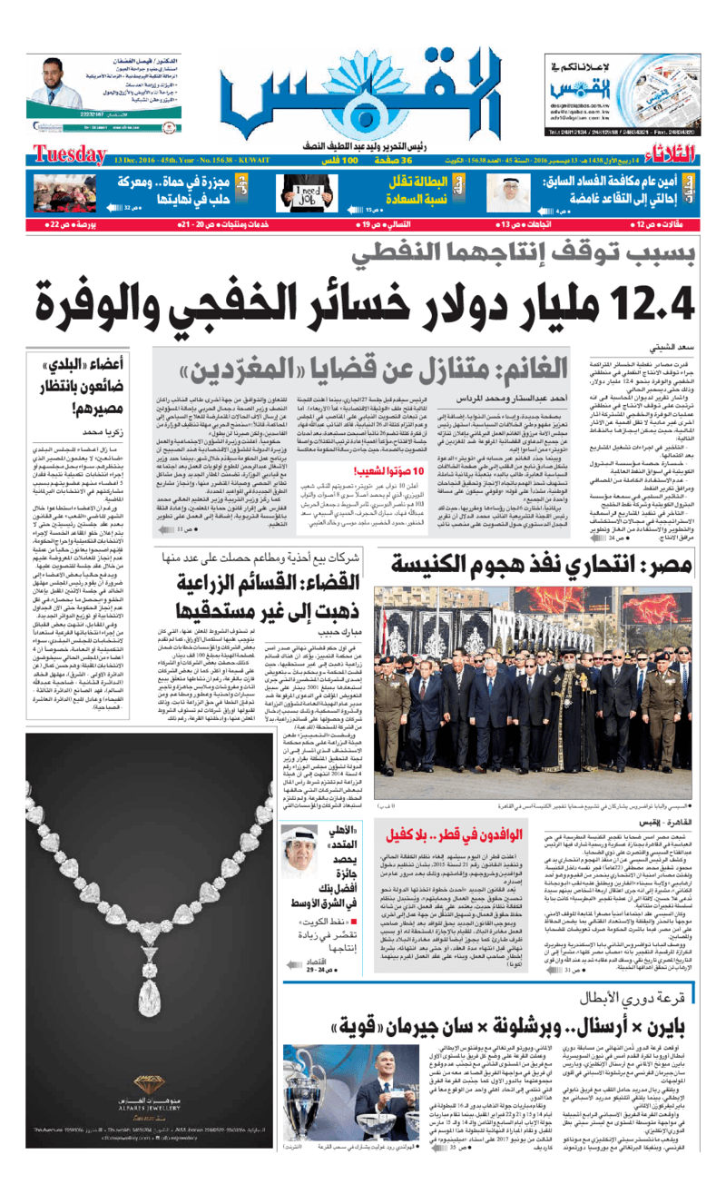 آخر الأخبار جرائم وقضايا “الجمارك” تضبط 29 ألف علبة مشروبات كحولية قادمة من دولة آسيوية في ميناء الشويخ 9 يونيو، 2024 محليات ممثلة عن دولة الكويت الطبيبة الكويتية أسماء الكندري تشارك في المؤتمر العالمي للمناظير في إيطاليا 8 يونيو، 2024 محليات “الصحة”: اكتمال وصول فريق الخدمات الطبية ببعثة الحج الكويتية لمكة المكرمة 8 يونيو، 2024 محليات “الصحة” تحدد 8 مراكز للصحة المدرسية لاستقبال الطلبة المبتعثين 8 يونيو، 2024 عربي وعالمي “الصحة العالمية”: تسجيل أول وفاة لشخص مصاب بـ«أنفلونزا الطيور» 7 يونيو، 2024 محليات عناوين الصحف الكويتية ليوم الثلاثاء 13 ديسمبر 2016 محرر المحليات13 ديسمبر، 2016أضف تعليق1 دقائق جريدة الجريدة جريدة الأنباء جريدة القبس جريدة السياسة جريدة الوطن جريدة الراي جريدة الوسط جريدة النهار الوسومTop عناوين الصحف المحلية من الممكن أن يعجبك جرائم وقضايا “الجمارك” تضبط 29 ألف علبة مشروبات كحولية قادمة من دولة آسيوية في ميناء الشويخ محليات ممثلة عن دولة الكويت الطبيبة الكويتية أسماء الكندري تشارك في المؤتمر العالمي للمناظير في إيطاليا محليات “الصحة”: اكتمال وصول فريق الخدمات الطبية ببعثة الحج الكويتية لمكة المكرمة محليات “الصحة” تحدد 8 مراكز للصحة المدرسية لاستقبال الطلبة المبتعثين عربي وعالمي “الصحة العالمية”: تسجيل أول وفاة لشخص مصاب بـ«أنفلونزا الطيور» تكنولوجيا رش السحب بملح البحر.. تجربة “ثورية” لتبريد كوكب الأرض أضف تعليق أضغط هنا لإضافة تعليق إلغاء الردالتعليقالاسم البريد الإلكتروني الموقع الإلكتروني Δ هذا الموقع يستخدم خدمة أكيسميت للتقليل من البريد المزعجة. اعرف المزيد عن كيفية التعامل مع بيانات التعليقات الخاصة بك processed.