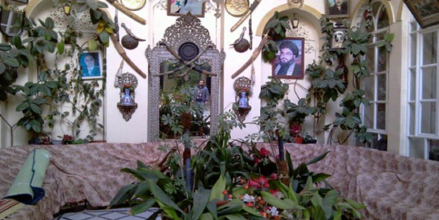 في إيوان المنزل، حيث كان يجتمع رجال الكتلة الوطنية السورية، توضّح الصور أن رأس النظام السوري بشّار الأسد بات هو من يتصدّر المشهد في صورة له أعلى الجدار، وعلى يمينه صورة للأمين العام لحزب الله، حسن نصر الله.