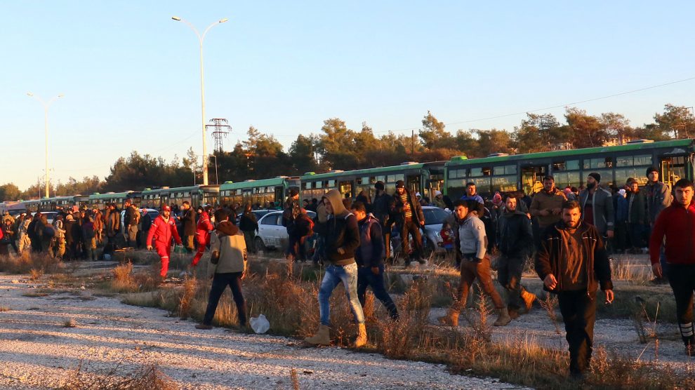 وقال رئيس وحدة الأطباء والمتطوعين الذين ينسقون عملية الإجلاء، أحمد الدبيس: “الآن وصل 20 باصاً محملة بأهلنا من حلب” إلى غرب المدينة، مشيراً إلى أنه “يوجد ما بين 1200 و1300 شخص هنا”.