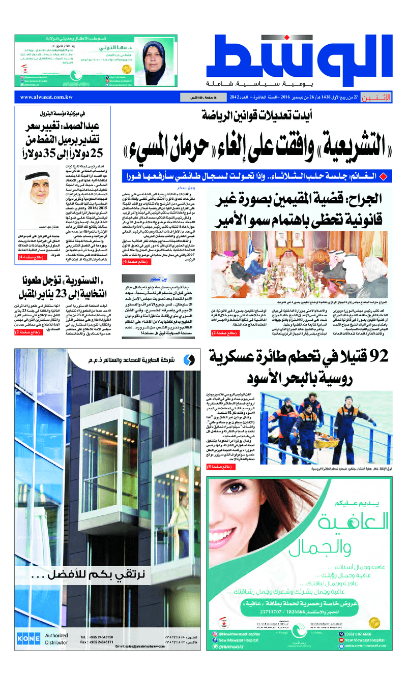آخر الأخبار جرائم وقضايا “الجمارك” تضبط 29 ألف علبة مشروبات كحولية قادمة من دولة آسيوية في ميناء الشويخ 9 يونيو، 2024 محليات ممثلة عن دولة الكويت الطبيبة الكويتية أسماء الكندري تشارك في المؤتمر العالمي للمناظير في إيطاليا 8 يونيو، 2024 محليات “الصحة”: اكتمال وصول فريق الخدمات الطبية ببعثة الحج الكويتية لمكة المكرمة 8 يونيو، 2024 محليات “الصحة” تحدد 8 مراكز للصحة المدرسية لاستقبال الطلبة المبتعثين 8 يونيو، 2024 عربي وعالمي “الصحة العالمية”: تسجيل أول وفاة لشخص مصاب بـ«أنفلونزا الطيور» 7 يونيو، 2024 محليات عناوين الصحف الكويتية ليوم الاثنين 26 ديسمبر 2016 محرر المحليات26 ديسمبر، 2016أضف تعليق1 دقائق جريدة الجريدة جريدة الأنباء جريدة القبس جريدة السياسة جريدة الراي جريدة الوسط جريدة النهار الوسومTop عناوين الصحف المحلية من الممكن أن يعجبك جرائم وقضايا “الجمارك” تضبط 29 ألف علبة مشروبات كحولية قادمة من دولة آسيوية في ميناء الشويخ محليات ممثلة عن دولة الكويت الطبيبة الكويتية أسماء الكندري تشارك في المؤتمر العالمي للمناظير في إيطاليا محليات “الصحة”: اكتمال وصول فريق الخدمات الطبية ببعثة الحج الكويتية لمكة المكرمة محليات “الصحة” تحدد 8 مراكز للصحة المدرسية لاستقبال الطلبة المبتعثين عربي وعالمي “الصحة العالمية”: تسجيل أول وفاة لشخص مصاب بـ«أنفلونزا الطيور» تكنولوجيا رش السحب بملح البحر.. تجربة “ثورية” لتبريد كوكب الأرض أضف تعليق أضغط هنا لإضافة تعليق إلغاء الردالتعليقالاسم البريد الإلكتروني الموقع الإلكتروني Δ هذا الموقع يستخدم خدمة أكيسميت للتقليل من البريد المزعجة. اعرف المزيد عن كيفية التعامل مع بيانات التعليقات الخاصة بك processed.