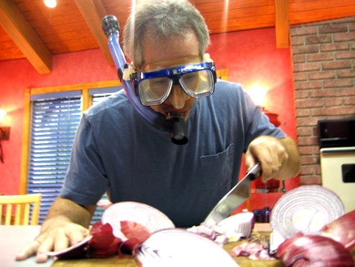نقع البصل في الماء قبل القطع، فالماء يمتص الغاز ويمكنك تجنب الدموع.
