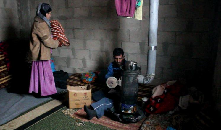 ويضيف أن المبنى الذي يسكنه ليس فيه أبواب، مما اضطره إلى سد كل منافذ الهواء بأكياس نايلون رقيقة، عسى أن تدفع عنهم موجة الصقيع.